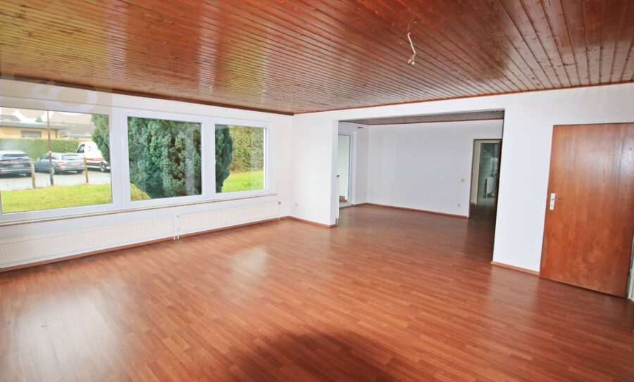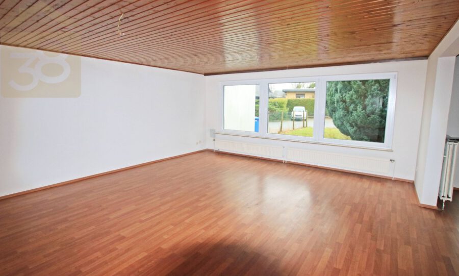 Vom stufenlosen Eingangsbereich gelangen Sie in die Diele, von der alle Zimmer abgehen. Es erwarten Sie ein großzügiges Wohnzimmer mit Zutritt zur Südterrasse, eine Küche, ein Schlafzimmer, zwei Kinderzimmer sowie ein Abstellraum. Diele, WC, Gäste-WC und das Wannenbad mit Fenster sind gefliest. Im Wohnbereich wurde Laminat verlegt und die Decken sind mit Holz vertäfelt. Das Objekt verfügt über eine moderne Aufteilung, insbesondere der großzügige Wohn- / Essbereich mit Zugang zur Südterrasse sind ein Highlight.