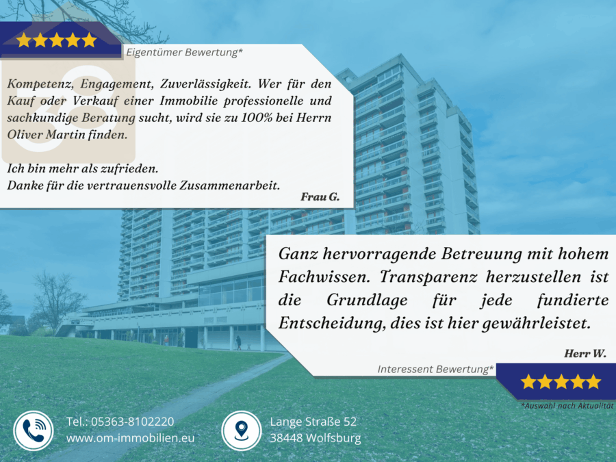 Unser Angebot ist nur für den Empfänger bestimmt. Bei Weitergabe an Dritte - auch auszugsweise - haftet der weitergebende für unsere Courtage. Da die in diesem Exposé enthaltenen Angaben auf Informationen des Eigentümers beruhen, können wir für die Richtigkeit trotz aller Sorgfalt keine Gewähr übernehmen. Hierfür bitten wir höflich um Ihr Verständnis. Mit dem Zugang dieses Angebotes kommt ein Maklervertrag zustande. Wird von unserem Angebot Gebrauch gemacht und das Objekt erworben, zahlt der Käufer an uns die für das Objekt ausgewiesene Courtage. Die Courtage ist mit dem Abschluss des Kaufvertrages verdient und zur Zahlung fällig. Als Gerichtsstand gilt Wolfsburg als vereinbart.