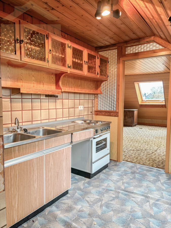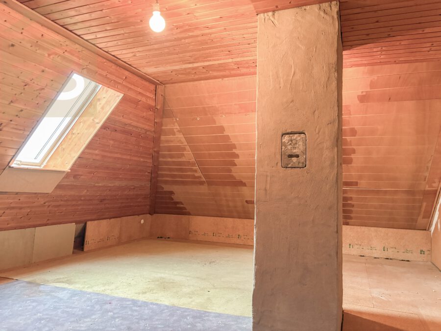 Das Dachgeschoss ist teilweise ausgebaut und umfasst bereits ein großzügiges Zimmer, das sich hervorragend als Studio, Hobbyraum oder zusätzliches Schlafzimmer eignet. Eine eigene Küche mit Einbauküche macht diesen Bereich vielseitig nutzbar. Das vorhandene Badezimmer mit Badewanne, WC und Waschbecken ermöglicht eine nahezu unabhängige Nutzung des Dachgeschosses – ideal für Gäste, ein erwachsenes Kind oder als Rückzugsort zum Arbeiten. Ein weiterer Raum bietet zusätzliches Ausbaupotenzial, etwa für zusätzliche Wohnfläche, Stauraum oder ein individuell gestaltetes Zimmer. Damit eröffnen sich hier noch viele Möglichkeiten, die Immobilie an die eigenen Bedürfnisse anzupassen.