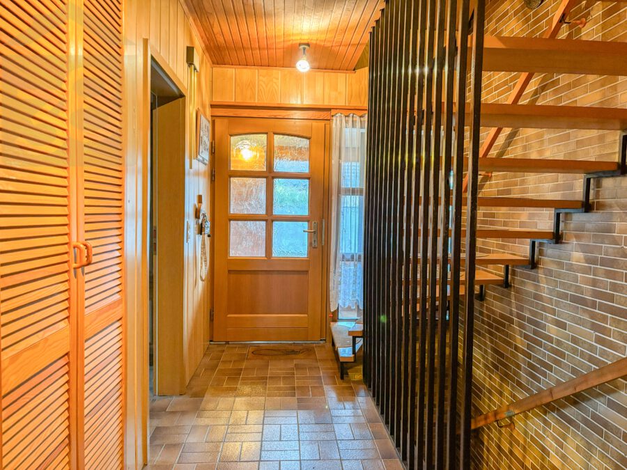 Im Erdgeschoss erwartet Sie ein einladender Flur, von dem aus alle Räumlichkeiten bequem erreichbar sind. Ein Gäste-WC befindet sich direkt im Eingangsbereich. Das großzügige Wohnzimmer mit offenem Küchenbereich bildet das Herzstück des Hauses. Die Einbauküche ist modern gestaltet und fügt sich harmonisch in den Wohnraum ein. Dank des Kaminofens entsteht hier eine besonders gemütliche Atmosphäre. Vom Wohnzimmer aus gelangen Sie direkt auf die rund 24 m² große Terrasse, die einen schönen Blick in den Garten bietet und ideal für entspannte Stunden im Freien geeignet ist. Zudem befinden sich im Erdgeschoss zwei Kinder- bzw. Arbeitszimmer, ein Schlafzimmer sowie ein helles Tageslichtbad mit Dusche, Badewanne und WC.