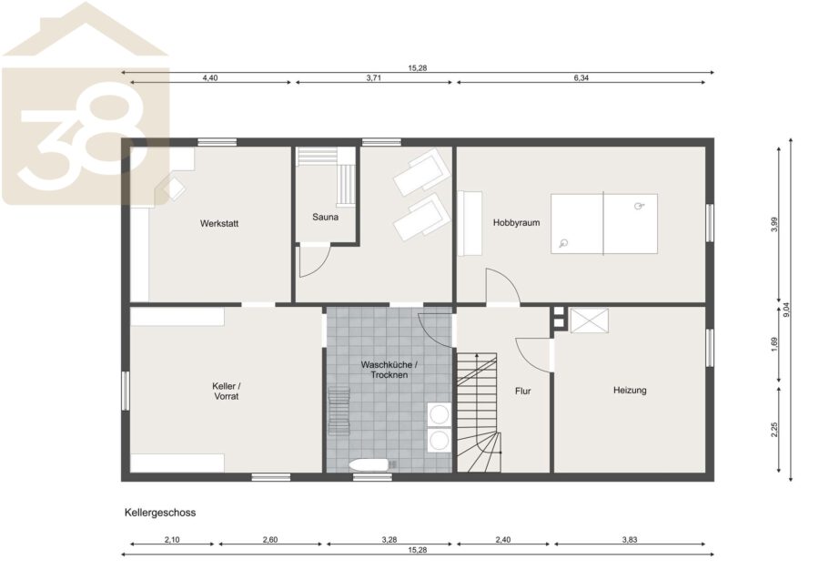Der Vollkeller bietet viele Nutzungsmöglichkeiten. Neben einem Hobbyraum und einer Werkstatt stehen Ihnen eine Sauna, eine Waschküche sowie der Heizungsraum zur Verfügung.