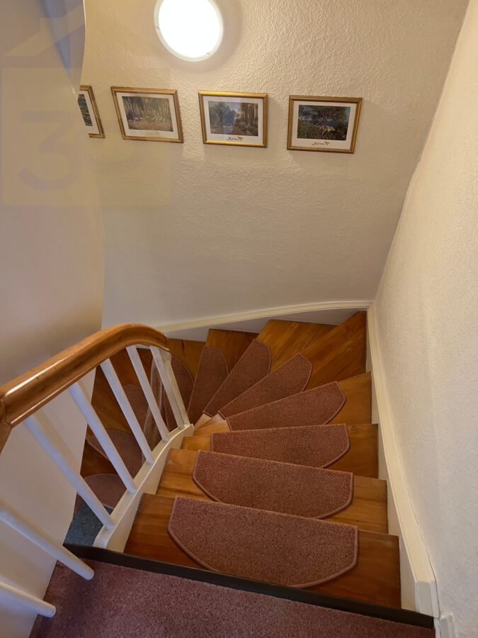 Über den Treppenaufgang gelangen Sie in das Obergeschoss. Ein weiteres Schlafzimmer sowie zwei flexibel nutzbare Kinder- oder Arbeitszimmer stehen Ihnen hier zur Verfügung. Das Badezimmer im Obergeschoss ist mit einer Badewanne einem WC sowie einem Fenster, das für eine gute Belüftung sorgt, ausgestattet.