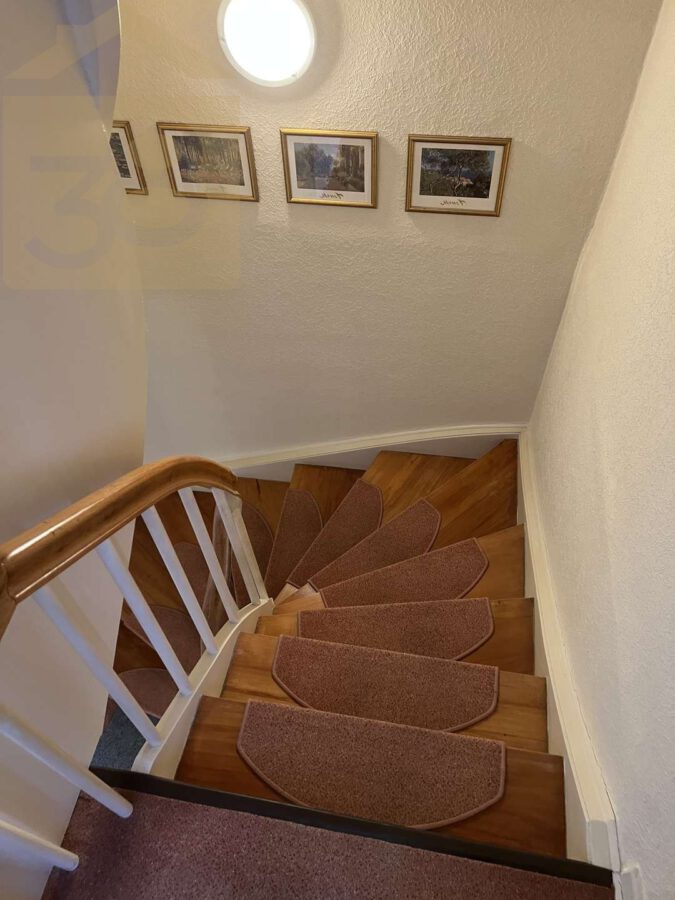 Der Zugang zum Haus erfolgt über das Kellergeschoss, das ein Schlafzimmer sowie ein Duschbad beherbergt – ideal als Gäste- oder privater Rückzugsbereich.
