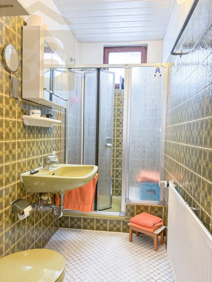 Im Erdgeschoss des Hauses befinden sich eine geräumige Küche, ein offener und lichtdurchfluteter Wohn- und Essbereich sowie ein Schlafzimmer, das sich ideal als Elternschlafzimmer, Gästezimmer oder Büro nutzen lässt. Von der Küche aus besteht ein direkter Zugang zur alten Stallung, was den ursprünglichen Charakter des Hauses unterstreicht und zahlreiche Ausbaumöglichkeiten eröffnet, sei es für Hobbyräume, Lagernutzung oder eine zukünftige Erweiterung des Wohnraums.
