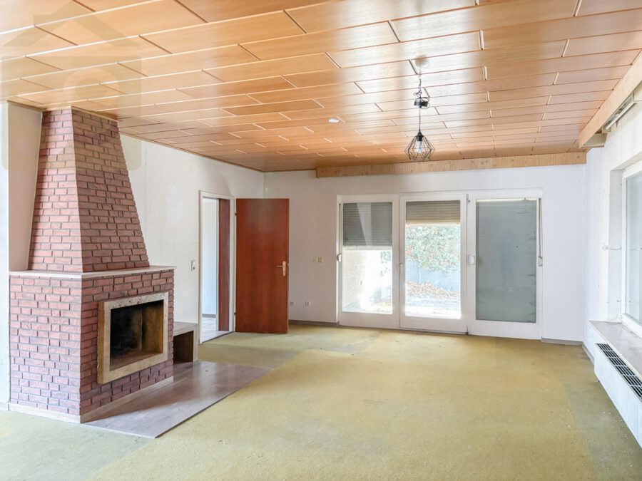 Die Raumaufteilung ist durchdacht und familienfreundlich gestaltet. Mittelpunkt des Hauses ist das großzügige Wohnzimmer mit integriertem Essbereich, das durch seine Größe vielfältige Gestaltungsmöglichkeiten eröffnet. Ein Kaminanschluss ist bereits vorhanden, sodass der Einbau eines Kamins problemlos realisiert werden kann und für eine besonders behagliche Wohnatmosphäre sorgt. Vom Wohnbereich aus gelangen Sie direkt auf die ca. 20 m² große überdachte Terrasse, die einen schönen Blick in den weitläufigen Garten bietet und zu entspannten Stunden im Freien einlädt.