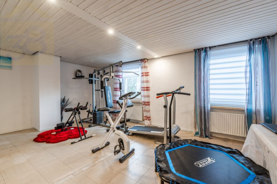 Das Haus ist voll unterkellert und bietet umfangreiche Abstell-, Hobby- und Technikräume. Eine Sauna sorgt hier für zusätzlichen Komfort und Erholung. Beheizt wird die Immobilie über eine moderne Wärmepumpe aus dem Jahr 2019 in Kombination mit einer Fußbodenheizung, die für ein angenehmes Raumklima sorgt. Eine Photovoltaikanlage, installiert im Jahr 2023, trägt zur nachhaltigen Energieversorgung bei. Der Glasfaseranschluss gewährleistet schnelles Internet und macht das Objekt auch für das Arbeiten im Homeoffice besonders attraktiv.