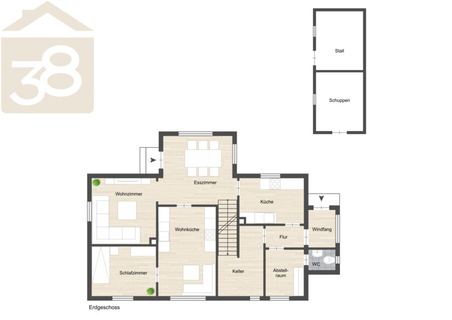 Ein besonderes Highlight ist der großzügige Garten, der viel Raum für Erholung und Freizeitaktivitäten bietet. Zusätzlich steht im Garten ein praktisches Nebenhaus zur Verfügung, das sich ideal zur Unterbringung von Gartengeräten oder für kleinere Werk- und Hobbyarbeiten eignet.