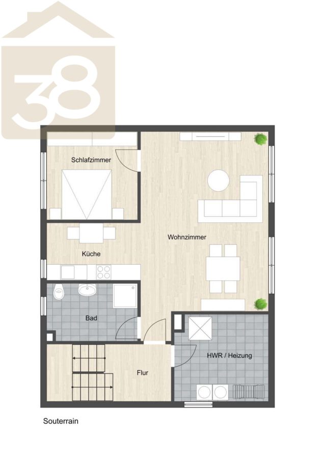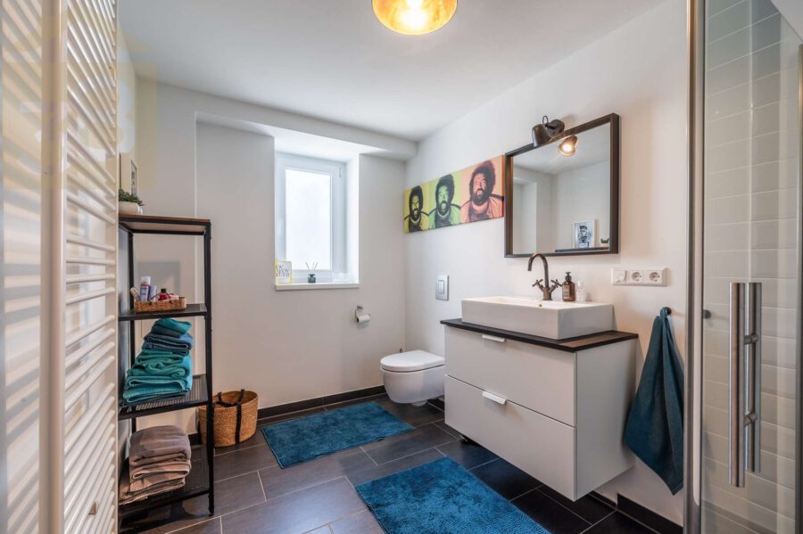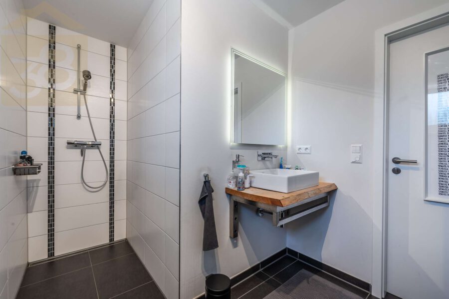 Im Souterrain eröffnen sich zahlreiche Möglichkeiten. Neben einem großen Wohn- oder Arbeitszimmer stehen hier eine weitere Küche mit Einbauküche sowie ein zusätzliches Schlafzimmer zur Verfügung. Ein Badezimmer mit ebenerdiger Dusche und WC sorgt für zusätzliche Unabhängigkeit. Durch die vorhandene Ausstattung eignet sich der Beereich ideal für Gäste, ein Homeoffice, ältere Kinder oder als separater Wohnbereich.