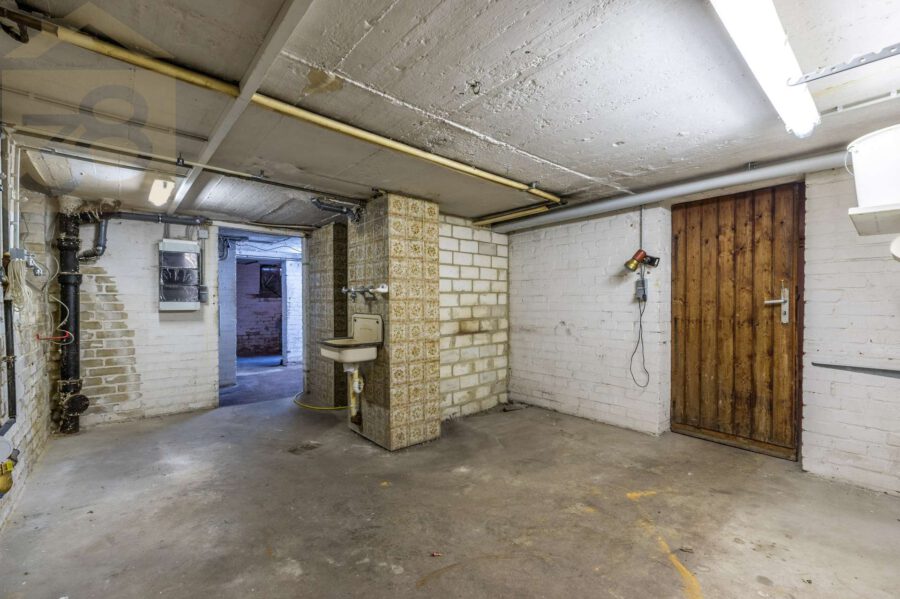 Das Haus ist vollständig unterkellert und bietet mit etwa 100 m² Nutzfläche viel Stauraum sowie Platz für Hobby- oder Werkbereiche. Eine Garage gehört ebenfalls zum Objekt und rundet das Angebot ab.
