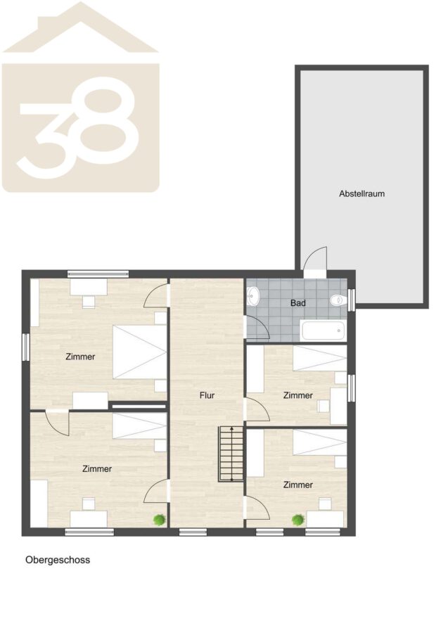 Im Obergeschoss erwarten Sie vier weitere gut geschnittene Zimmer, die sich ideal als Schlaf-, Kinder- oder Arbeitszimmer eignen. Ergänzt wird diese Etage durch ein Tageslicht-Duschbad, das für zusätzlichen Komfort sorgt.