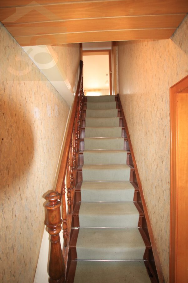 Die Gesamtfläche von 240 m² Wohnfläche verteilt sich auf zwei separate Wohneinheiten im Erd- und Obergeschoss. Das Haus ist renovierungsbedürftig und bietet dem neuen Eigentümer die Möglichkeit, die Gestaltung und Ausstattung nach eigenen Vorstellungen umzusetzen. Derzeit sind die Böden mit einer Mischung aus Teppich, Linoleum und Fliesen belegt. Bereits wichtige Modernisierungen wurden durchgeführt: Die Fenster wurden im Jahr 1999 erneuert und die Heizkörper stammen aus dem Jahr 2000.