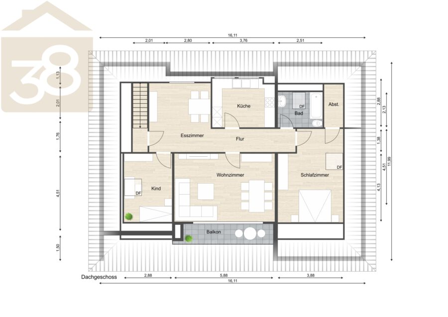 - DG ca. 90 m² Wohnfläche – 3 Zimmer