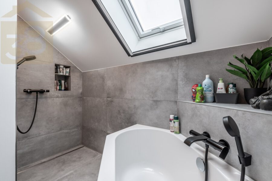 Das Badezimmer ist sowohl mit einer Dusche als auch einer Badewanne ausgestattet und verfügt über ein Fenster für optimale Belüftung und Tageslicht. In der gesamten Wohnung wurde ein eleganter Vinylboden verlegt, der für ein modernes und pflegeleichtes Wohngefühl sorgt.