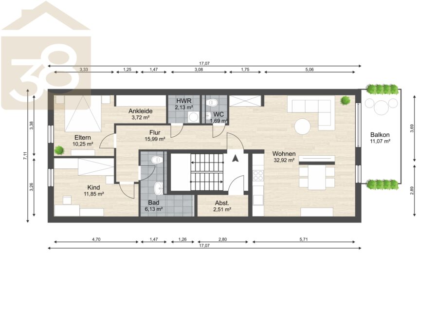 - Balkon 12 m²