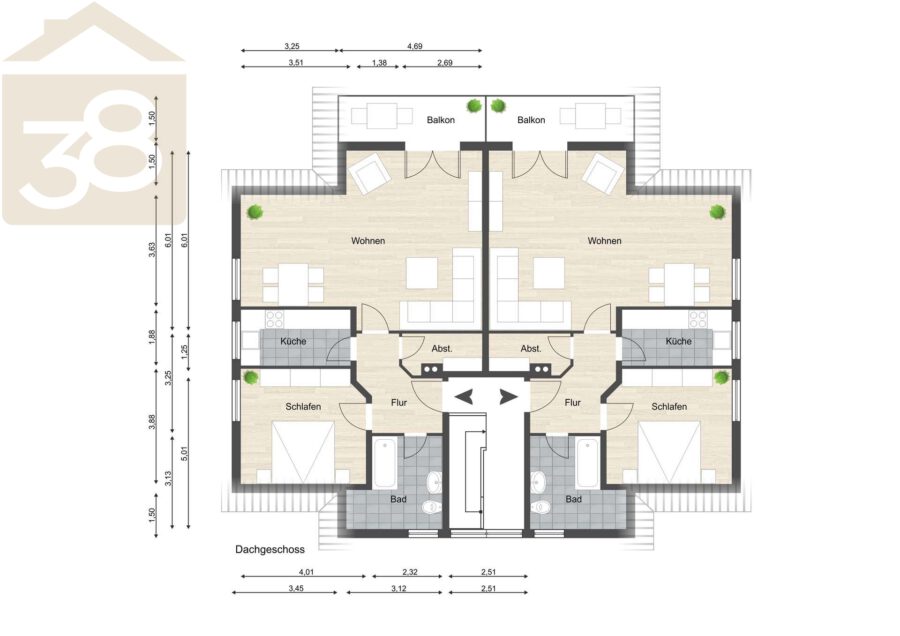 • 132 m² Wohnfläche aufgeteilt auf jeweils 66 m²