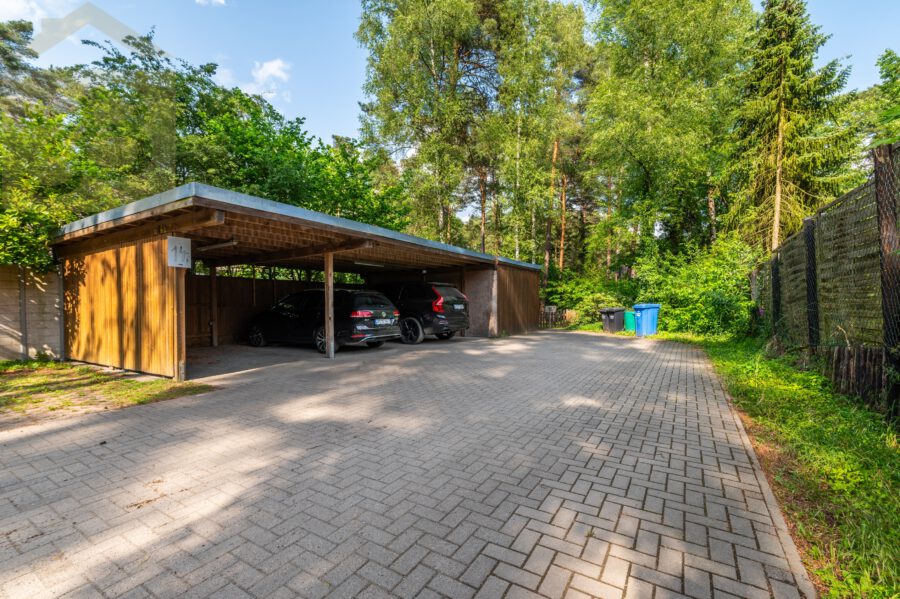 Zur Wohnung gehört ein Carport mit zwei Stellplätzen zur sicheren Unterbringung Ihres Fahrzeuges und einem Abstellraum.