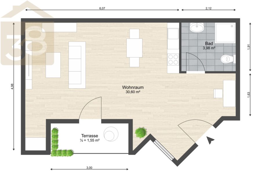 - 36 m² Wohnfläche