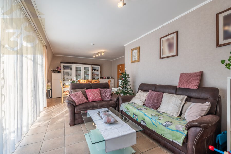 Die Wohnung empfängt Sie mit einem geräumigen Flur, der Zugang zu einem separaten Gäste-WC sowie zu einem praktischen Abstellraum bietet. Das helle Wohnzimmer mit integriertem Essbereich bildet das Herzstück der Wohnung und überzeugt durch seine Großzügigkeit sowie den direkten Zugang zum Balkon, der zusätzlichen Raum zum Entspannen im Freien schafft. Die separate Küche ist mit einer Einbauküche ausgestattet und bietet ausreichend Platz für die täglichen Kochbedürfnisse.