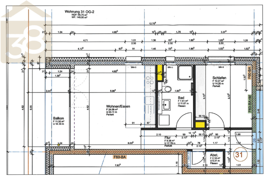 Wohnfläche ca.61 m²