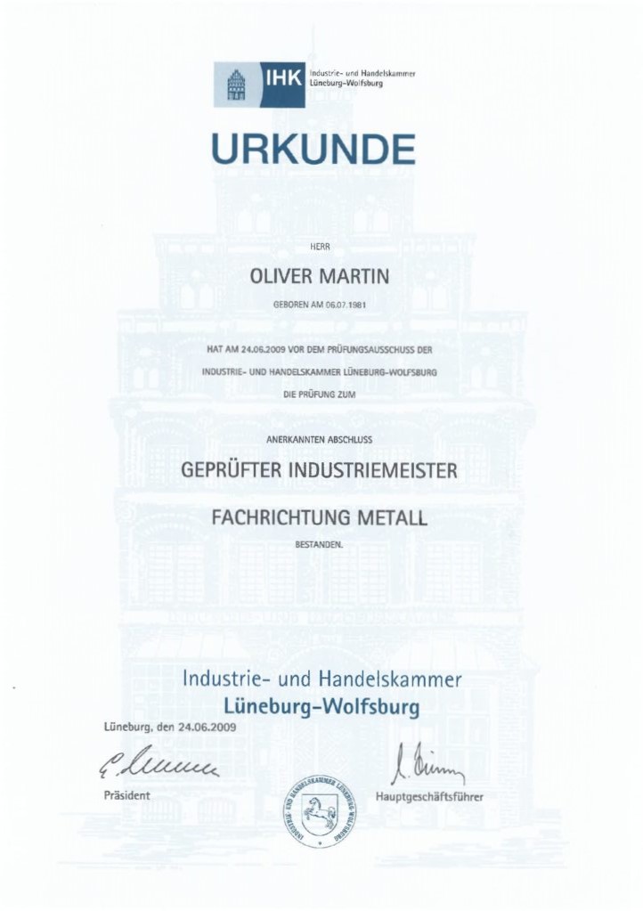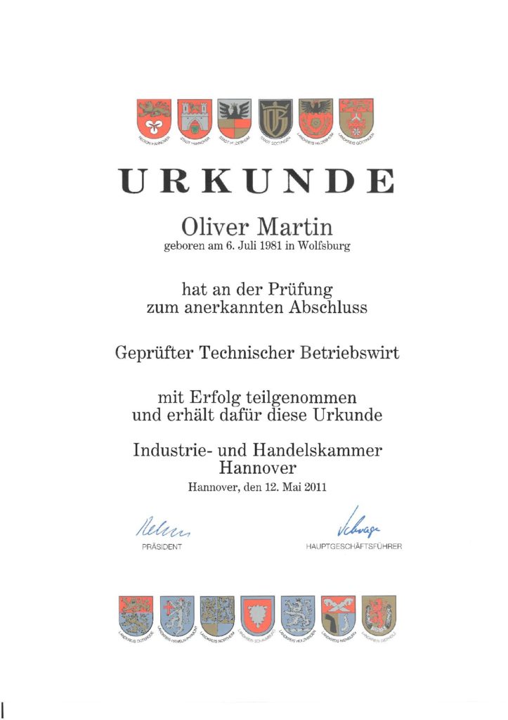 Geschäftsinhaber, Immobilienfachwirt (IHK), Technischer Betriebswirt (IHK), Industriemeister Metall (IHK)