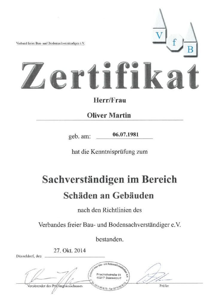 Aufgrund eigener Immobilien und der damit verbundenen Bewirtschaftung durch das frühe Ableben meines Vaters, habe ich von klein auf eine enge Verbundenheit zu Immobilien. Ich habe einen erfolgreichen Abschluss im Berufsgrundbildungsjahr Bautechnik, Industriemeister Metall IHK, technischer Betriebswirt IHK, geprüfter Sachverständiger für die Wertermittlung von Immobilien nach v.f.b e.V. und bin geprüfter Immobilienfachwirt (IHK). Weiterbildung und stetige Qualifizierungen sind für mich ein Muss, um meine Kunden immer zielgerichtet und wahrheitsgemäß zu beraten.